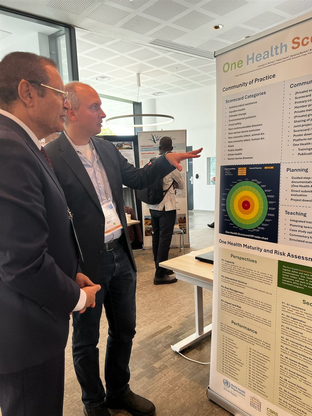 وعلى هامش المؤتمر، عقد رئيس الهيئة عدة لقاءات ثنائية رفيعة المستوى، شملت اجتماعه مع الدكتور بنوِت مريبيل، رئيس الهيئة الفرنسية للصحة الواحدة المستدامة للجميع التابعة لمعهد باستير الفرنسي، حيث تم بحث فرص التعاون وتبادل الخبرات في مجال مكافحة المخاطر المناخية وتأثيرها على صحة الإنسان والبيئة.