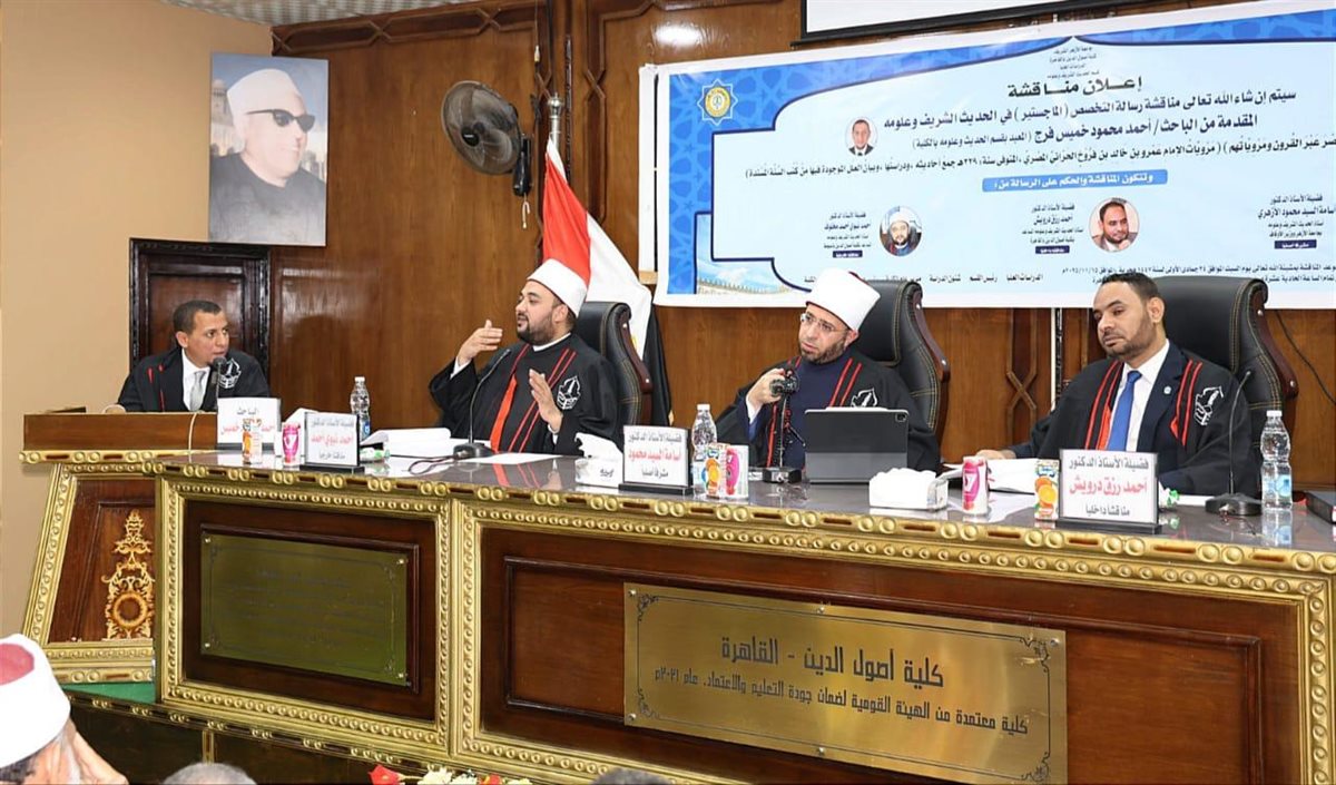 وخلال المناقشة، أشاد الدكتور أسامة الأزهري بجهد الباحث، وما اتسمت به الرسالة من دقة في جمع المرويات وتوثيقها، معتبرًا هذا النوع من الدراسات إضافة مهمة لخدمة علوم الحديث الشريف وربط الباحثين بمناهج الأئمة المتقدمين. وفي ختام الجلسة، قررت اللجنة منح الباحث درجة الماجستير في الحديث الشريف وعلومه بتقدير ممتاز.