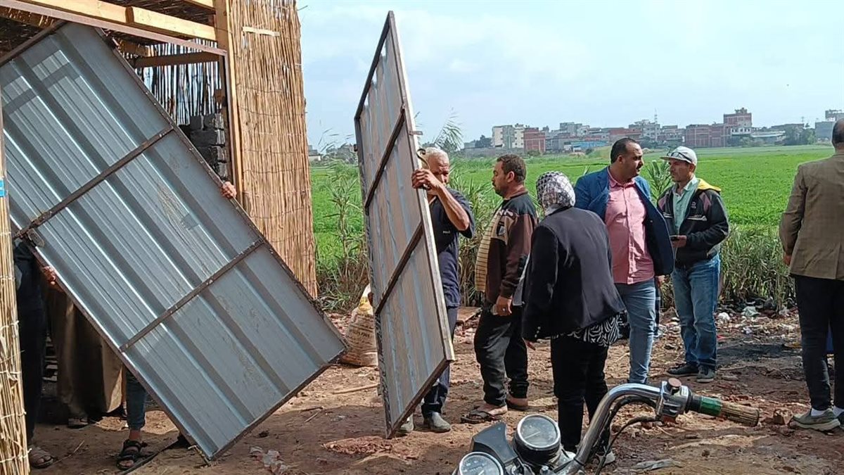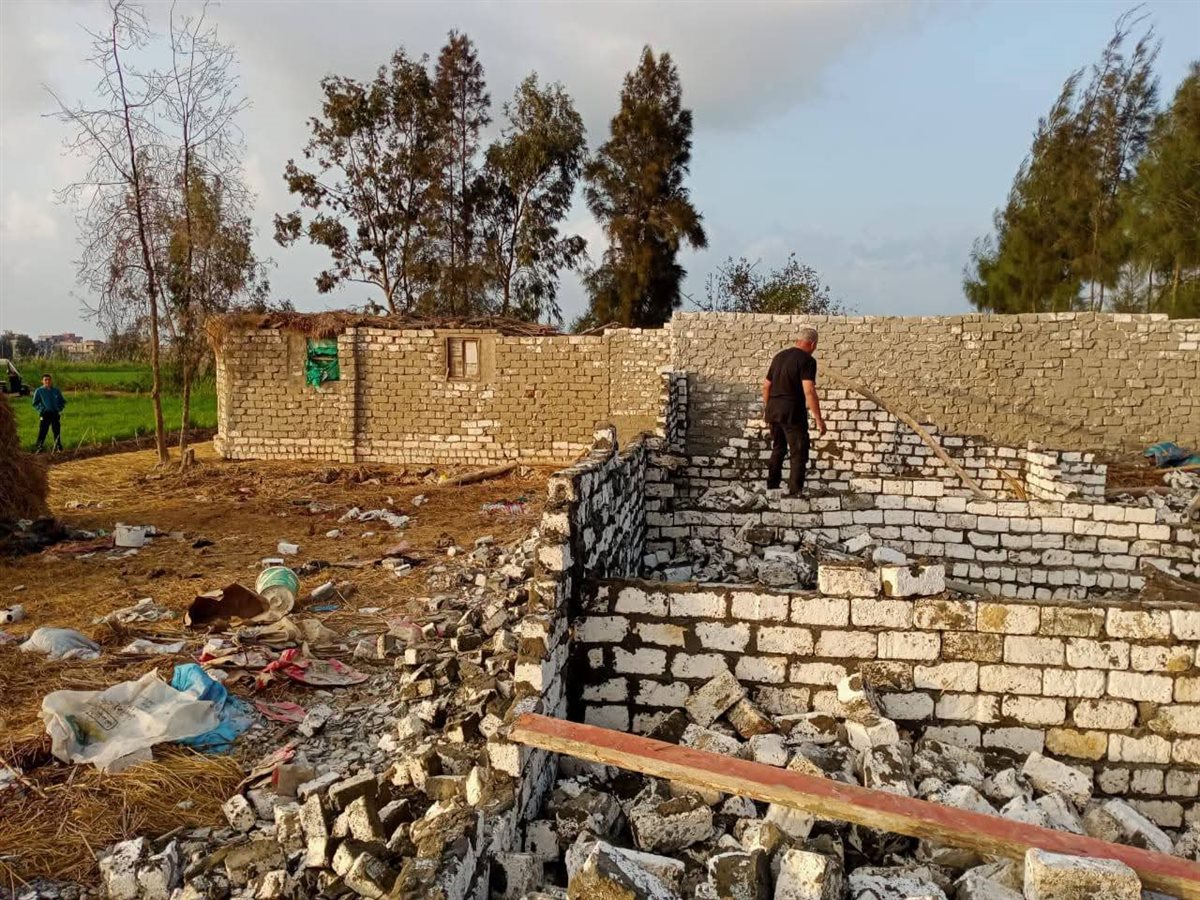 تاسعا: مركز المنزله: تم إزالة سور من الطوب الاحمر خارج الحيز العمراني بقرية الفروسات، وإزالة سور من الصاج لمتغير غير قانوني