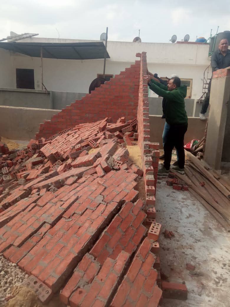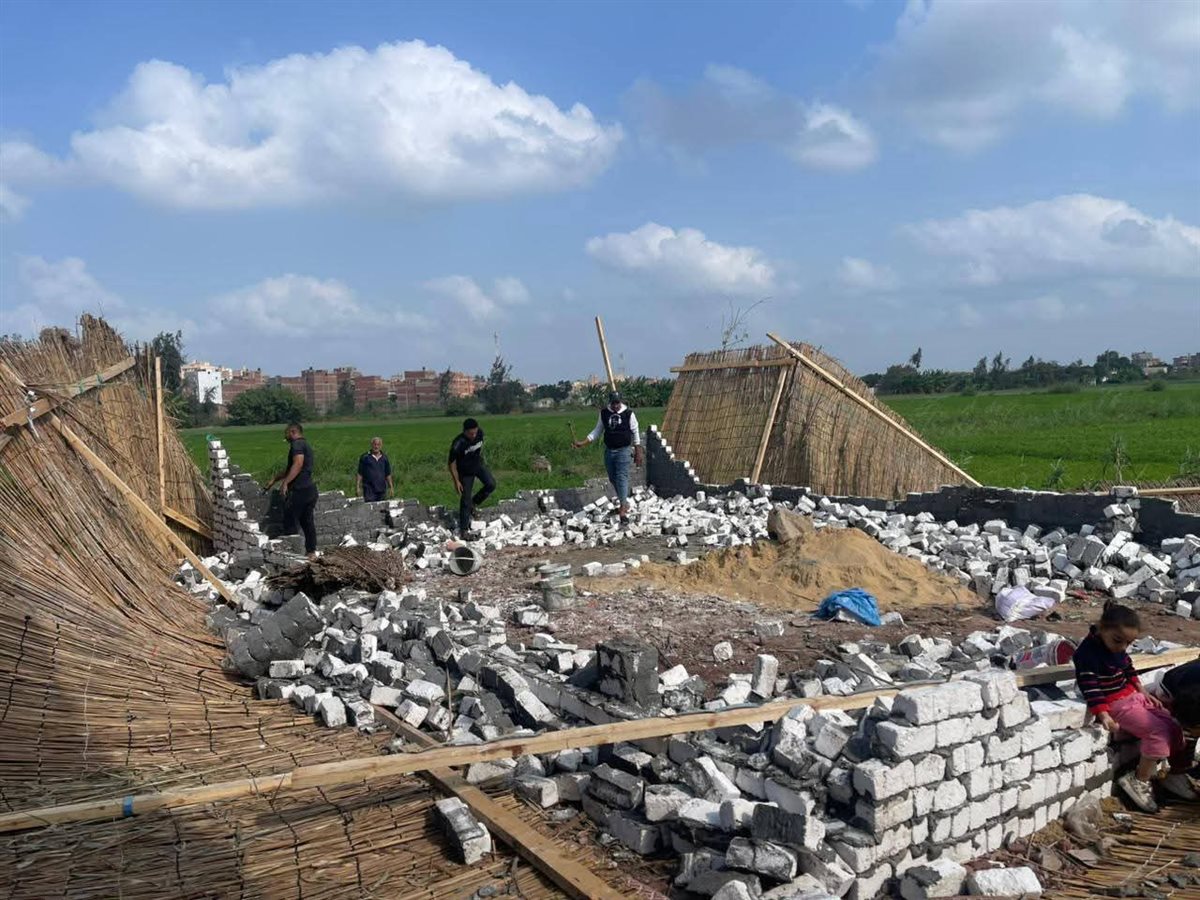 خامسا: مركز ميت سلسيل: تم إزالة حالة تعدى بناء ثلاثة غرف بالبلوك الأبيض خارج الحيز العمرانى بمساحة حوالى ١٢٠ متر بقرية النظارة.