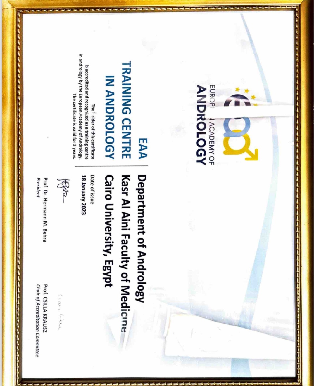 في إنجاز جديد يُضاف إلى سجل كلية طب قصر العيني العريق، نال قسم أمراض الذكورة للمرة الثانية شهادة الاعتماد من الأكاديمية الأوروبية لأمراض الذكورة (EAA Training Centre in Andrology)، ليُجدد ريادته كأحد أبرز مراكز التميز العلمي والإكلينيكي في المنطقة.