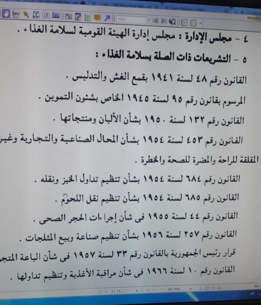 وقال أن المادة الأولى من القانون رقم 1 لسنة 2017، والخاص بإنشاء هيئة سلامة الغذاء، احتفظت بكل القوانين والقرارات السابقة المنظمة لسلامة الغذاء، وتفعيلها في هذا المجال، وهي ذات القوانين التي كانت تعتمد عليها وزارتي الصحة والتموين وباقي الجهات المتداخلة في مجال الرقابة على الغذاء.
