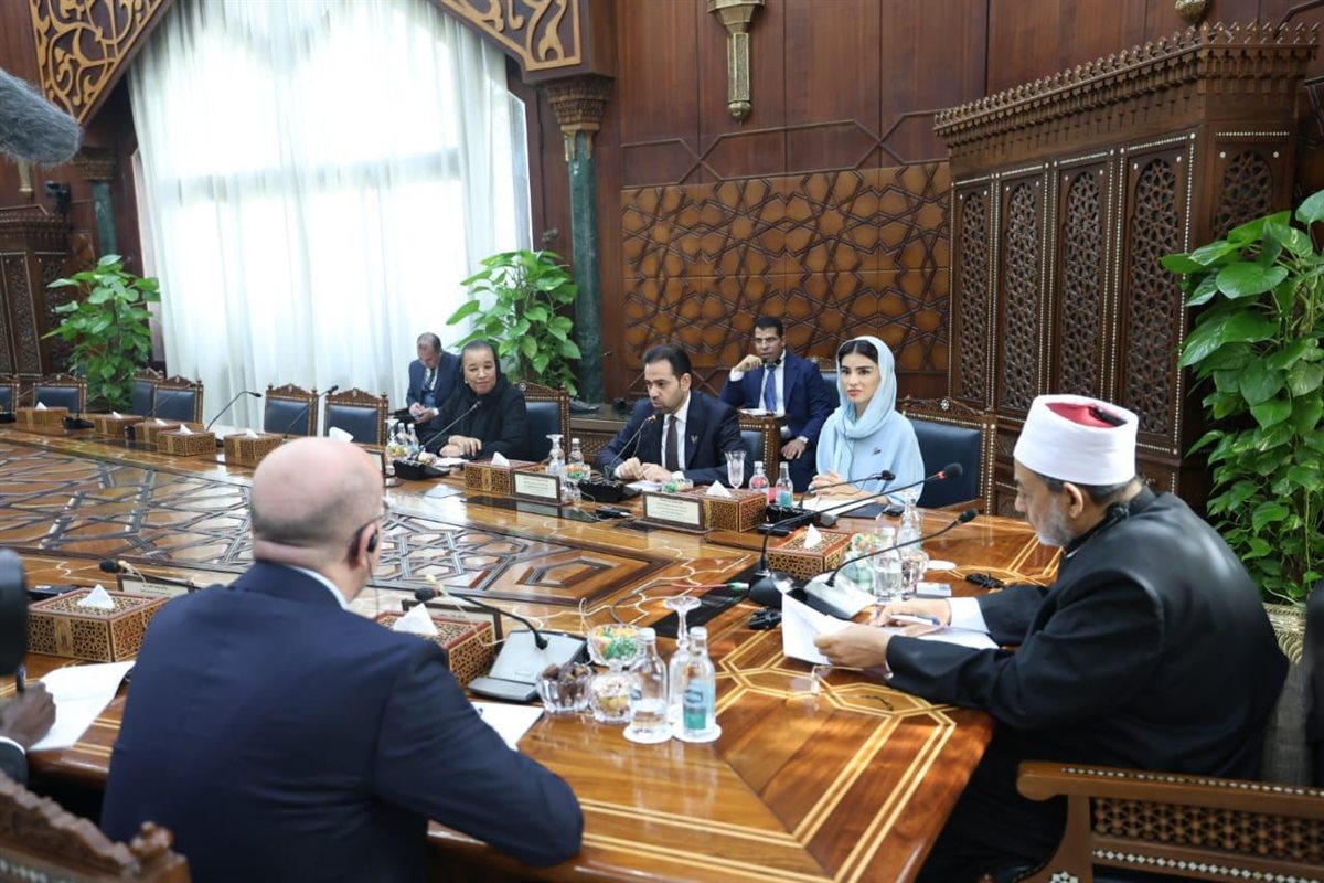 استقبل فضيلة الإمام الأكبر الأستاذ الدكتور أحمد الطيب، شيخ الأزهر الشريف، رئيس مجلس حكماء المسلمين، بمشيخة الأزهر الشريف في القاهرة، أعضاء لجنة تحكيم جائزة زايد للأخوَّة الإنسانية في دورتها السابعة 2026؛ حيث ضم وفد الجائزة العالمية المستقلة الزائر كلًّا من: سعيدة ميرزيوييفا، رئيسة الإدارة الرئاسية في جمهورية أوزبكستان، وشارل ميشيل، رئيس المجلس الأوروبي السابق رئيس وزراء بلجيكا الأسبق، والمستشار محمد عبد السلام، الأمين العام لجائزة زايد للأخوَّة الإنسانيَّة، وموسى فكي محمد، رئيس مفوضيَّة الاتحاد الإفريقي السابق رئيس وزراء تشاد الأسبق.