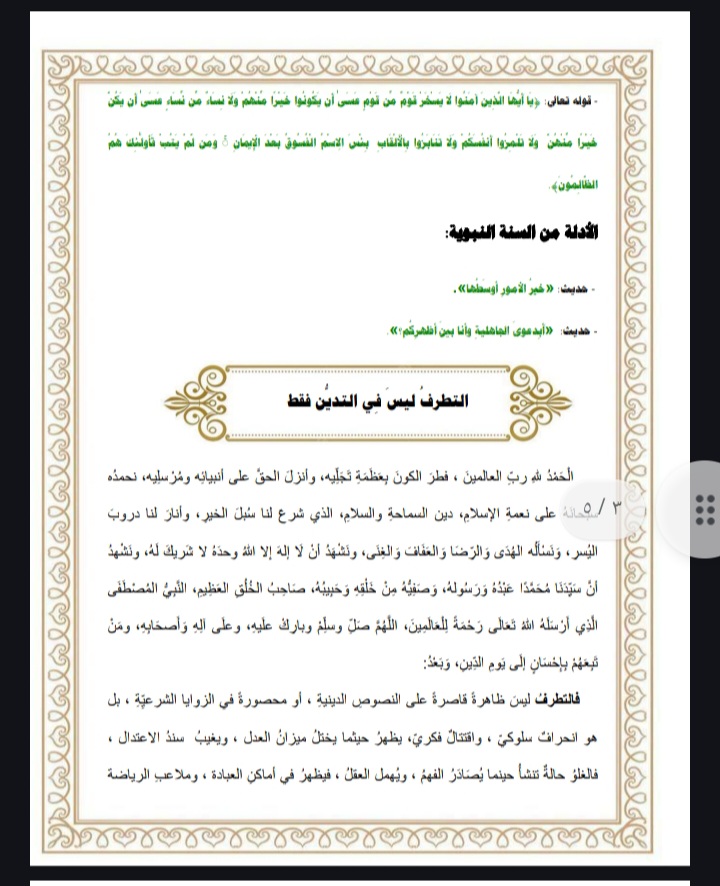 التي جائت بعنوان: «التطرف ليس في التدين فقط».