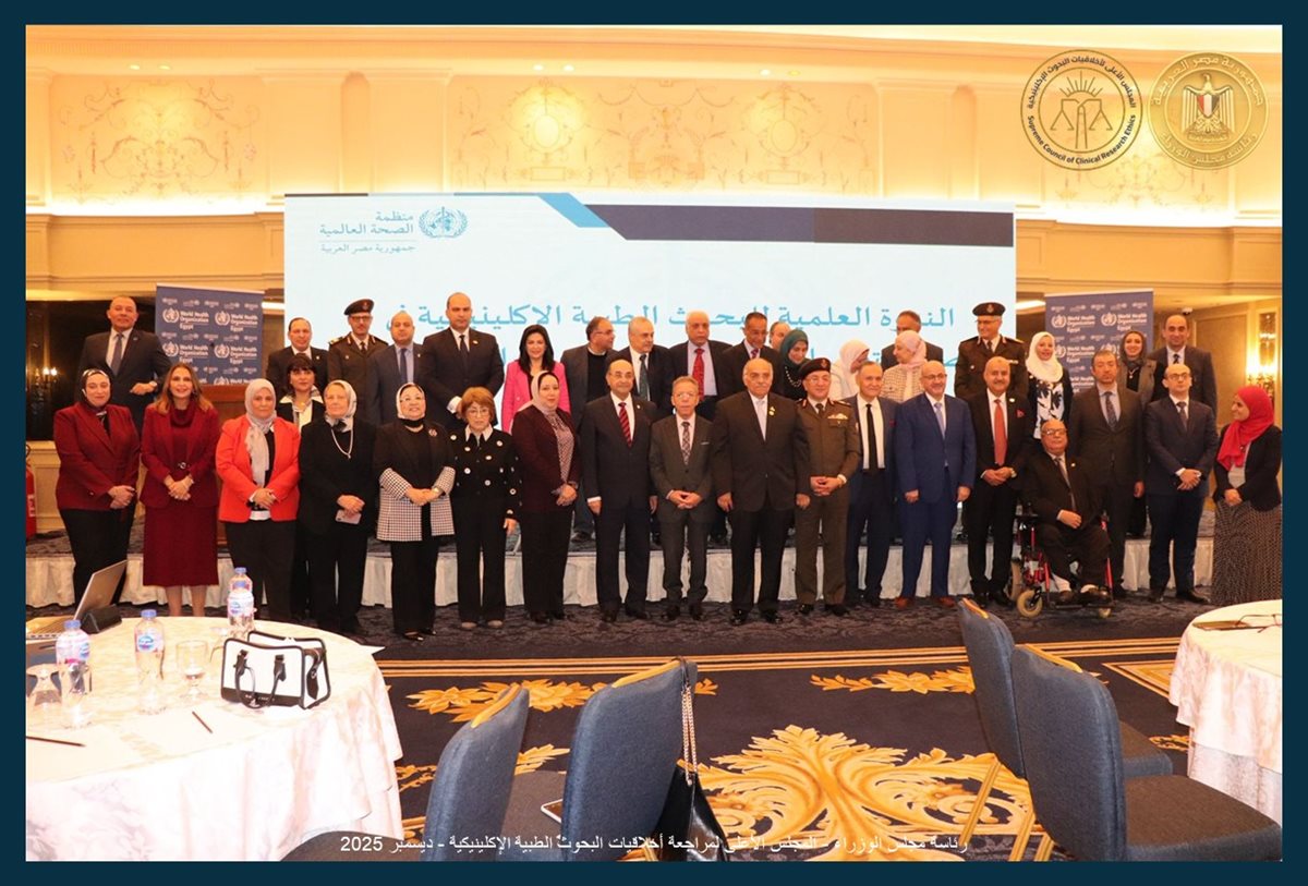 نظم المجلس الأعلى لمراجعة أخلاقيات البحوث الطبية الإكلينيكية التابع لرئاسة مجلس الوزراء، بالتعاون مع مكتب منظمة الصحة العالمية بمصر، ندوة علمية بعنوان «البحوث الطبية الإكلينيكية في مصر: التحديات، الحلول، والتوجهات المستقبلية»، بمشاركة قيادات صحية وبحثية ورقابية وجامعية وممثلي القطاع الخاص.