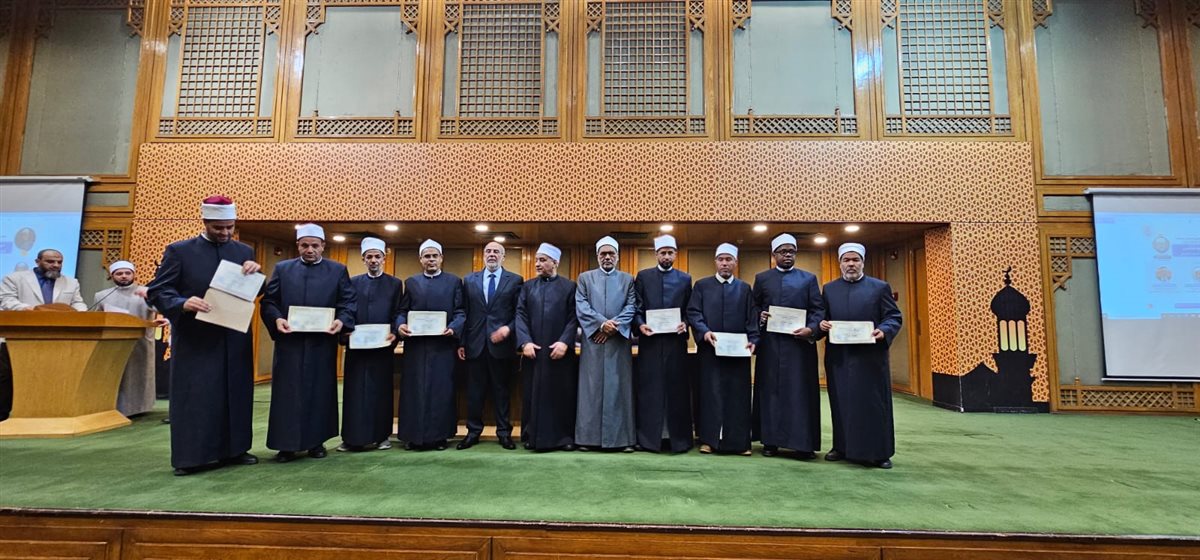وفي ختام الحفل، سلّم فضيلة الدكتور حسن الصغير الشهادات للمشاركين، موجّهًا لهم التحية على التزامهم وجهودهم خلال فترة التدريب، ومتمنيًا لهم دوام التوفيق والسداد في أداء رسالتهم الدعوية وترسيخ الصورة المشرقة للإسلام وقيمه السمحة في مجتمعاتهم.