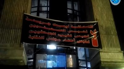 "لا لحبس النقيب".. لافتة ضخمة على أبواب نقابة الصحفيين (فيديو)