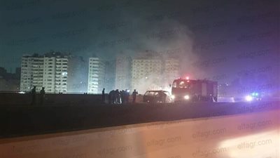"العربية ولعت".. تفحم "ميكروباص" أعلى محور تحيا مصر