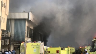 "مدني المدينة" يباشر حريقاً في مجمع تجاري بشارع قباء (صور)