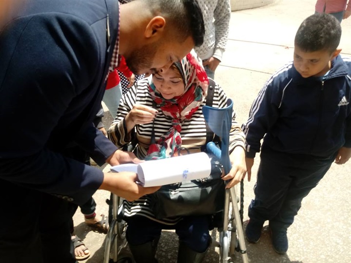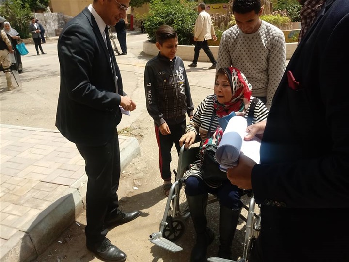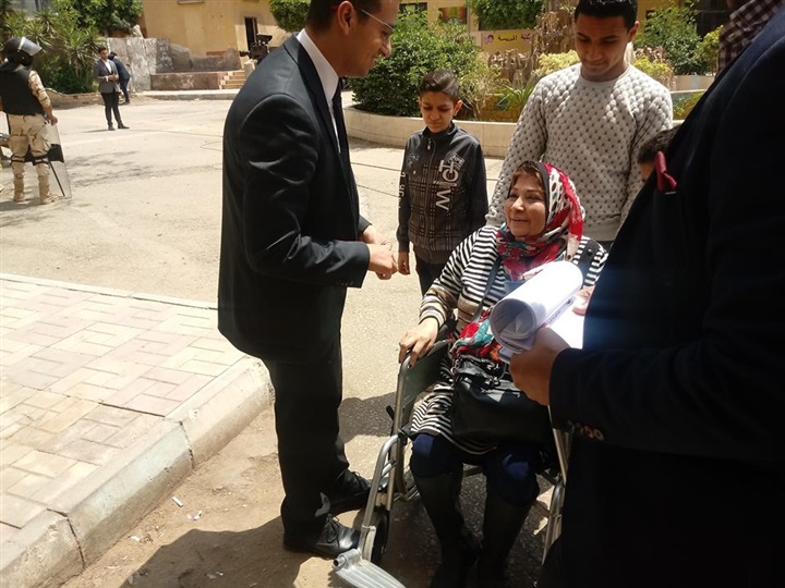 سيدة تحرص علي الإدلاء بصوتها ورئيس اللجنة يوفر لها سُبل الراحة