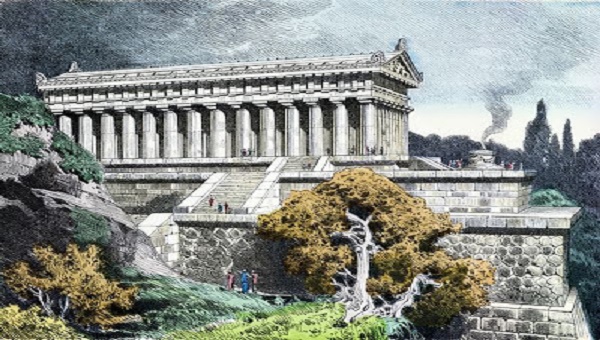 بنى هذا المعبد الرخامى العظيم إهدائا للإلهة اليونانية آرتميس -أو التى تدعى ديانا فى الميثولوجيا الرومانية- وتم الإنتهاء من بنائه عام 550 قبل الميلاد فى افسوس (حاليا قريبا من مدينة Selçuk فى تركيا)قام بتصميمه المعماري كريسفرون، وابنه ميتاغينس ويحتوى على 120 من الأعمدة يصل ارتفاع الواحد منها إلى 20 مترا بالاضافة الى أعمال فنية وتماثيل من البرونز للأمازونيات (شعب أسطورى من المقاتلات النساء).قام رجل يدعى هيروستراتوس بحرق المعبد فى عام 356 قبل الميلاد فى محاولة لتخليد إسمه ، ثم تم بناء آخر شبيه على أساساته. ثم أحرق القوط المعبد الثاني عام 262 م، ولم تبق سوى الأساسات وجزء من المعبد الثاني. ويحوي المتحف البريطاني منحوتتين من المعبد الثاني.
