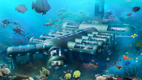 لايزال في مراحل التخطيط، ويتطلع نحو هاواي، مصر، وجزر البهاما وماليزيا كما سيتم تصميم الغرف المفضلة في مصنع قبل أن يتم نقلها لتجميعها في الموقع، وسوف يتم إنشاء الفندق من الصلب والاكريليك المزدوج وسوف يضم مساحة لتناول الطعام وصالة ومصعدا تحت الماء سوف يقلع من طوف عائم، وستتراوح الأسعار بين 3000 و 6000 دولار في الليلة الواحدة.