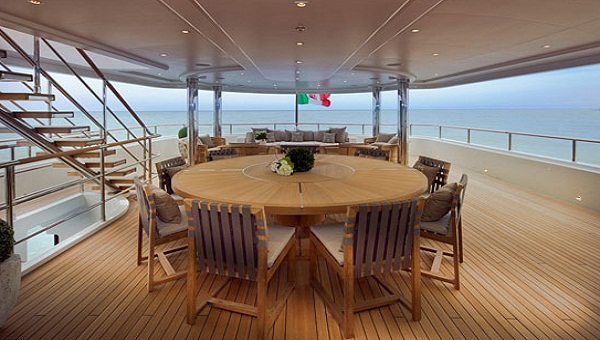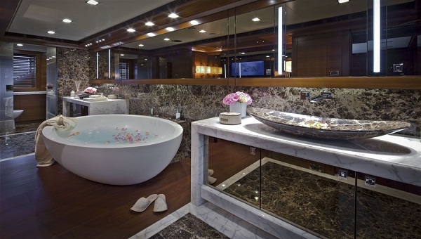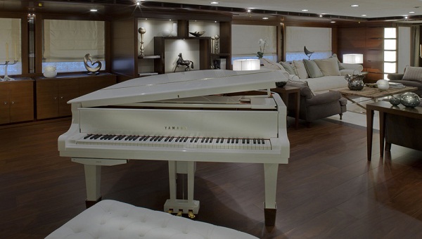 يتميز اليخت العملاق بوجود صالة ألعاب رياضية، وحجرات النوم تتمتع بذوق راق، وتطل على البحر من خلال نوافذ زجاجية كبيرة، وشرفة تسمح بالجلوس لتناول الطعام بها، وهو مكون من 4 طوابق مصنوعة من خشب الورد المصقول وأرضية صلبة من شرائط Afromosia وسجاد الـ تاى بينج الأبيض.