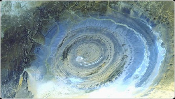 ويمكنك رؤية عين أفريقيا من السماء في الصحراء الموريتانية، حيث تبدو من السماء وكأنها عين بشرية بكافة تفصيلاتها.