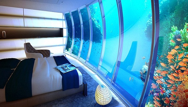 تم تصميم أكبر فندق تحت الماء في العالم على شكل سفينة الفضاء، وسيضم قسمين على شكل أقراص كبيرة واحدة فوق أخرى تحت الماء، متصلة بواسطة الدرج، ولايزال هذا الفندق في مرحلة المفهوم، وعندما يتم بناؤه، فسوف يتمكن النزلاء من البقاء في غرف الفندق البالغ عددها 21، والمصممة لتتكامل مع العالم تحت الماء بأكبر قدر ممكن.