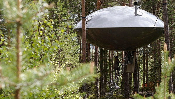 ترتفع هذه المنشآت المعدنية من خلال الغابات السويدية الهادئة، على ارتفاع ستة أمتار عن الأرض وفي رؤوس الأشجار، وتتميز بهيكلها الذي يوحي بأنها تحوم فوق الأرض، ويمكن للزوار الوصول إلى الغرفة من خلال الدرج، وتتميز داخلية الغرفة بلمسات مستوحاة من الفضاء تجعل الضيوف يشعرون وكأنهم في كوكب آخر.