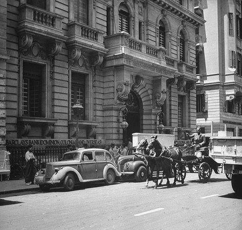 مشهد من شوارع القاهرة يعود إلى سنة 1940م أمام بنك باركليز.