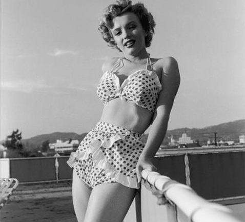 وسمّي "بيكيني" تيمناً بجزيرة "بيكيني"، حيث كانت تتم اختبارات نووية. ويظهر في الصورة أول ظهور للـ "بيكيني" كما نعرفه اليوم، ولم يستطع مصمموه إيجاد عارضة أزياء "محترمة" تقبل بارتدائه بحسب ما زعموا، فلجؤوا إلى راقصة تعري لترتديه أمام الكاميرا.