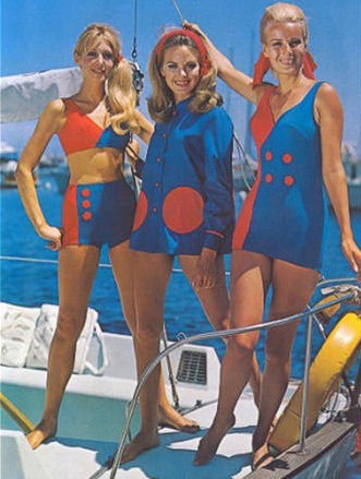 أما ثياب البحر "البيكيني" فبدأت في فترة الستينات، عندما أصبحت اتجاهات الموضة موجهة بشكل أكبر للشباب، ما دفع بمصممي الأزياء إلى الإبداع في تصميم ملابس السباحة. ذُكر مصطلح "بيكني" للمرة الأولى في العام 1946، وهو من ابتكار المهندس الفرنسي لويس ريارد.