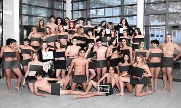 من الطقوس المتبعة في معظم مدارس العالم، اجتماع الطلاب والمدرسين لالتقاط صورة تذكارية، نهاية كل عام، لكن هذه المرة الحال اختلف، حيث قرر طلاب مدرسة بريطانية التقاط الصورة دون ملابس.
