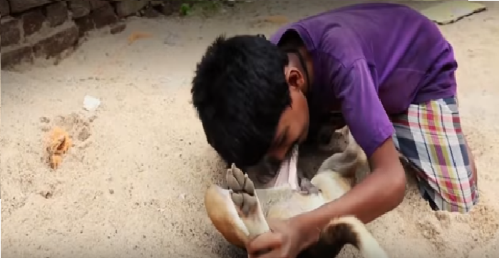 طفل يتغذى على لبن الكلاب الضالة ولا احد يستطيع منعه (صور)!