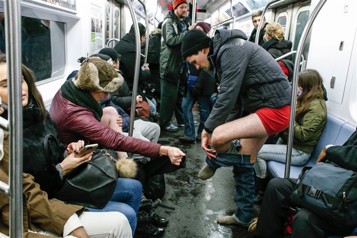 احتفل بالأمس ركاب المترو فى كل من أمريكا وبريطانيا وكندا بـ"اليوم العالمى لخلع السروال"، حيث حرص ركاب المترو فى البلدان الثلاث على خلع سراويلهم والاكتفاء بملابسهم الداخلية.