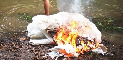 احتفالًا بطلاقها.. سيدة تحرق فستان زفافها بالجاز! (صور)