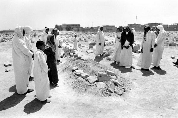 صورة نادرة لبعض الاشخاص وهم يزورون قبر الملك فيصل عام 1975