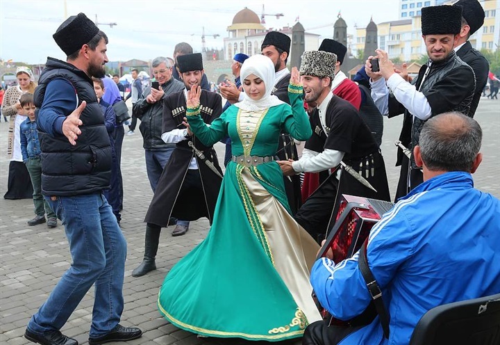 وبحسب صحيفة "ديلي ميل"، حمل بعض السكان أسلحتهم النارية للاحتفال بالذكر بينما مارس البعض الآخر الرقص الشيشاني التقليدي.