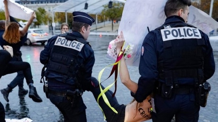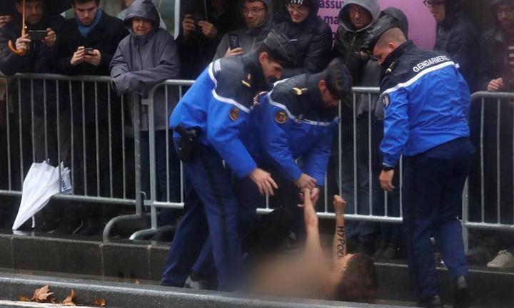 حاولت مجموعة من المتظاهرات عاريات الصدر الوصول إلى موكب الرئيس الأمريكي دونالد ترامب أثناء مروره في شارع شانزيليزيه في باريس، قبل حضور أنشطة إحياء مئوية هدنة الحرب العالمية الأولى، لكن قوات الشرطة حالت دون وصولوهن للموكب.