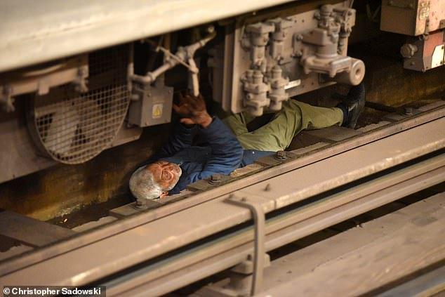 وبعد عدة مكالمات إلى الطوارئ، وصل المسعفون إلى مكان الحادث للعثور على الرجل العالق بين المسار والقطار، وقالت السلطات إنها تمكنت من مساعدته بعد ذلك، وحُجز في مستشفى كإجراء احترازي ولكنه بخير.