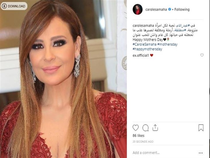 وجهت الفنانة اللبنانية كارول سماحة رسالة للأم في عيدها، عبر حسابها الرسمي على "إنستجرام"، قائلة: "في عيد الأم تحية لكل امرأة متزوجة، أو مطلقة، أرملة ومعتفة لصبرها علي ما تحتمله في حياتها، وكل عام وأنتن للحب عنوان".