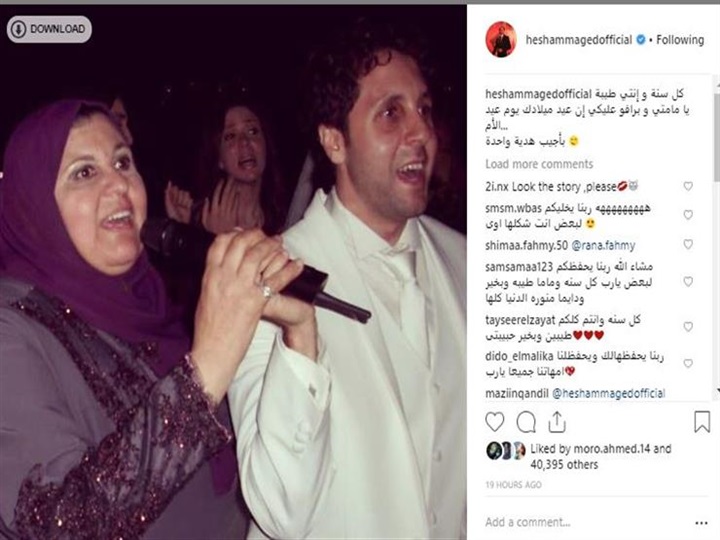 نشر الفنان هشام ماجد صورة تجمعه بوالدته، عبر حسابه الرسمي على "إنستجرام"، وعلق: "كل سنة وأنتي طيبة يا مامتي، وبرافو عليكي إن عيد ميلادك يوم عيد الأم".