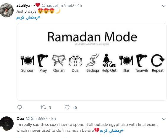 وعلق عبد الله عبد الخالق على الهشتاج بنشر صورة مضمونها "اللهم بلغنا رمضان، فيما اعرب زلابيا عن استياءه الشديد لانه سيقضي رمضان خارج البلاد ولم يستطع فعل الأشياء التي اعتاد عليها في شهر رمضان 2019.