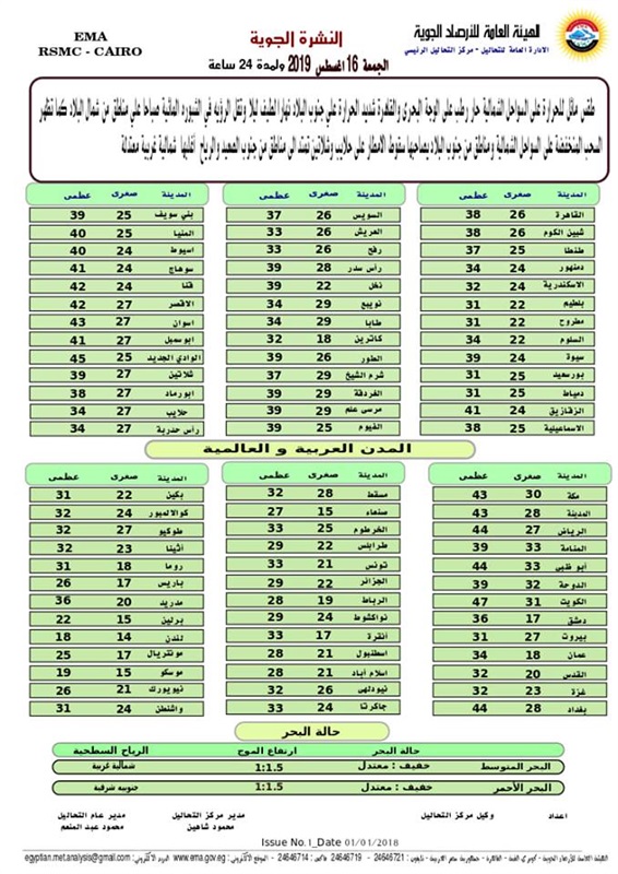 إليك درجة الحرارة الحرارة المتوقعة غد الجمعة 16/8/2019 في محافظات مصر وبعض المدن العربية والأجنبية