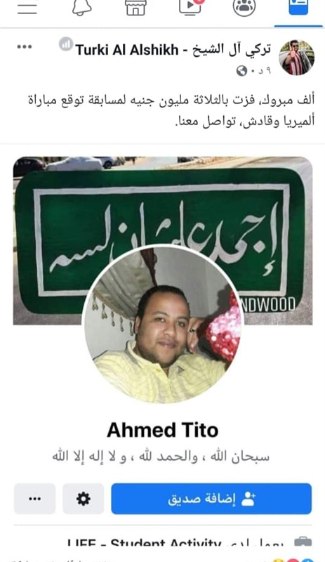 ونشر تركى آل الشيخ صورة للفائز عبر صفحته الشخصية عبر موقع التواصل الاجتماعي "فيسبوك"، وعلق عليها قائلا: "ألف مبروك، فزت بالثلاثة مليون جنيه لمسابقة توقع مباراة الميريا وقادش، تواصل معنا".