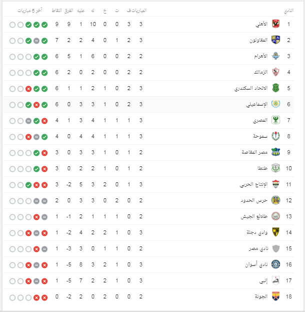 بعد فوز الإسماعيلي على وادي دجلة، ننشر لكم في السطور التالية جدول ترتيب الدوري المصري، حيث فاز فريق "الإسماعيلى" على نظيره دجلة بهدف ويدخل المربع الذهبي، على استاد بتروسبورت مساء أمس السبت الموافق 5/10/2019.