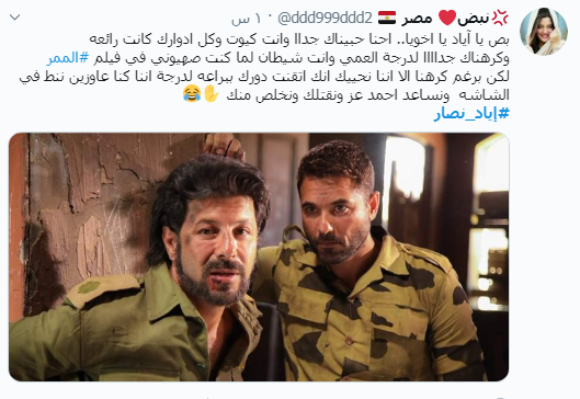 وجه الجمهور لـ إياد نصار بطل فيلم الممر رسائل تعبر عن مدى براعته في الدور الذي قدمه لدرجة كرههم الشديد لشخصية الضابط الاسرائيلي الذي قدمها في فيلم الممر، بعد عرضه أمس عبر قناة on e.