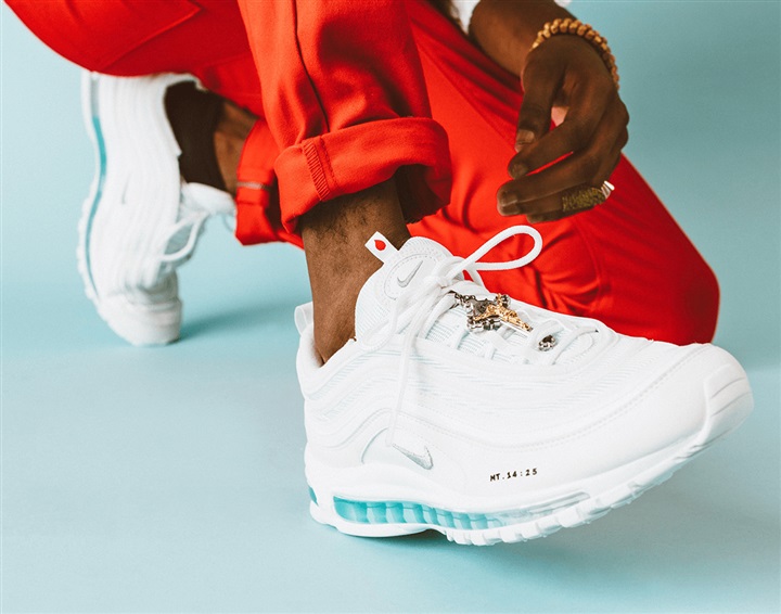 حيث قامت شركة MSCHF في بروكلين بإعادة تصميم الحذاء الرياضي Air Max 97 الأبيض، عن طريق حقن مياه "مقدسة" من نهر الأردن في نعل الحذاء الرياضي وإضافة روائح البخور.