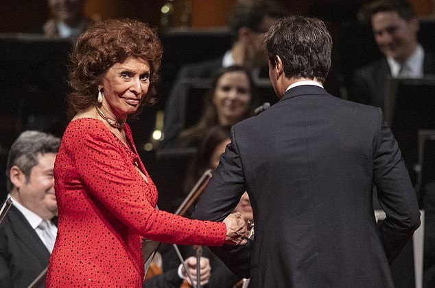 وارتدت صوفيا لورين فستان سهرة أحمر اللون وصعدت إلى المسرح بمعاونة آخرين، لأنها صارت تعرج منذ سقوطها في منزلها ولم تعد قادرة على السير بشكل جيد.