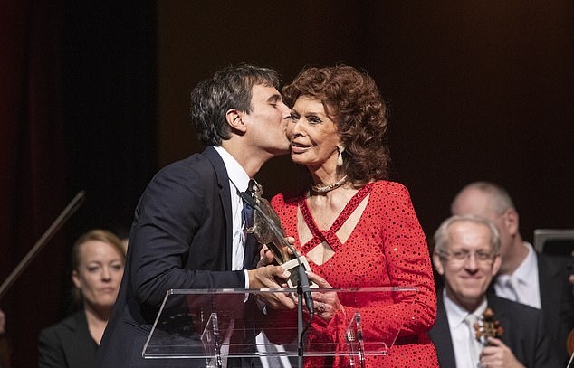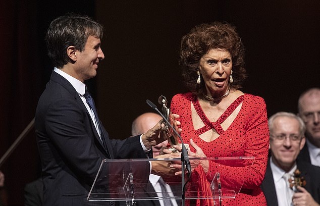 وقالت صوفيا لورين أسطورة السينما: "اليوم أنا متأثرة جدا جدا، فلأول مرة يسلمني ابني جائزة".