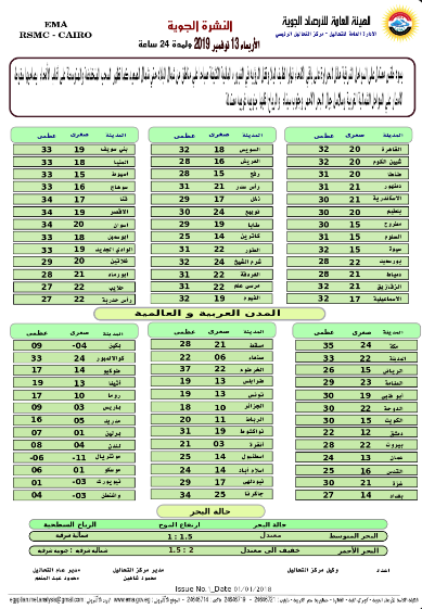 وفيما يلي نُقدم لكم بيان درجة الحرارة غدا الأربعاء 13/11/2019