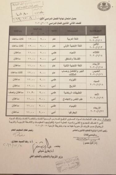 كشفت وزارة التربية والتعليم والتعليم الفني، عن موعد امتحانات الفصل الدراسي الأول لعام 2019-2020، للصف الثاني الثانوي، بشكل نهائي بعد تعديله.