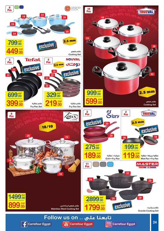 كذلك مستلزمات المطبخ والأجهزة الكهربائية بالإضافة إلى العروض المتميزة التي يقدمها كارفور على الأجهزة الكهربائية، فإنه يقدم أيضا بمناسبة العام الجديد وعيد ميلادي الـ 17 على افتتاح أول فرع له في مصر، فهناك عروضا خاصة على مستلزمات المطبخ والكثير من السلع الغذائية، منها اللحوم والفاكهة والأسماك والدواجن، وكذلك الزيوت والأرز والسكر، كما نجد هناك خصومات خاصة جدا على كل مستلزمات النظافة ومساحيق الغسيل، فتابعوا معنا كل العروض وكل ماهو جديد بالصور لتختاروا منها ما تريدون.