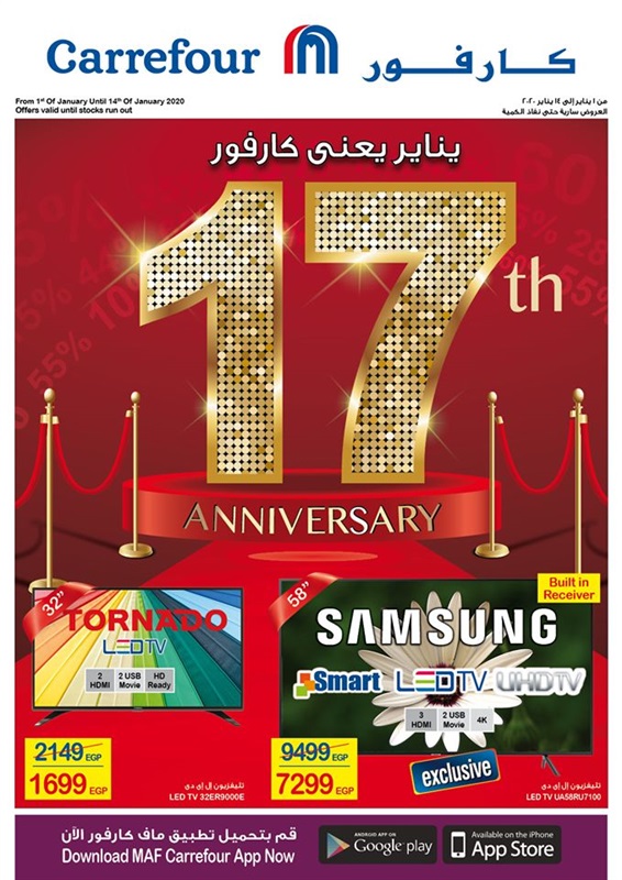 وتقدم كارفور أبرز منتجاتها والتي تنتجها شركات عالمية معروفة مثل عرض حلل ثماني قطع من بتوفير قدره 600 جنية، وحالة الضغط المصنوعة من التيفال بسعر 1399 جنية ويوجد شركة بين كارفور وبنك CIB والذي يمكنك من الحصول على كاش باك بنسبة 10% بحد أقصى 100 جنية، وذلك بواسطة بطاقة CIB ويستمر هذه العرض من 1 وحتى يوم 19 يناير عند التسوق أون لاين، ويأتي هذا العرض بمناسبة عيد ميلاد كارفور.