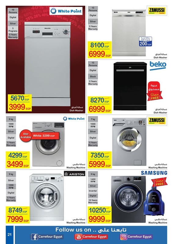 وقد إستطاعت خلال الجمعة البيضاء بشهر نوفمبر الماضي عمل خصومات مماثلة ولا تحدث في مصر فقط بل تحدث الخصومات من جميع أنحاء العالم، وتمتد عروض كارفور من المنتجات كالمجمدات وأنواع الجبن المختلفة بالإضافة إلى منتجات النظافة والأدوات المنزلية الصغيرة والأجهزة الكهربية الضخمة، بل إمتدت إلى فلاتر المياة والمقدم من شركة تانك ويمكن رؤية مجلة كارفور عبر هذه الصور.