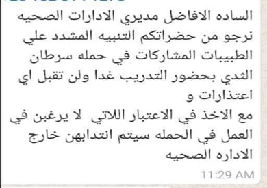 رفضت وزارة الصحة طلباتهن، وهددت طبيبت التكليف بنقلهن خارج الصحية، في حال امتناعهن عن حضور التدريب، في تعنت شديد من قبل الوزارة.