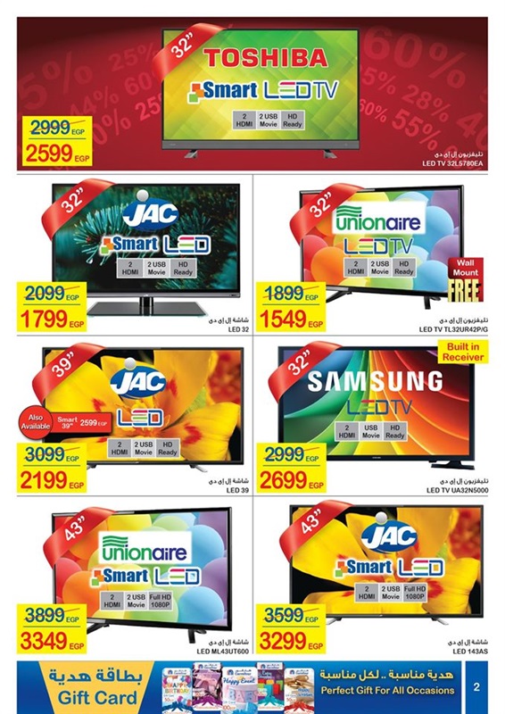 شاشة توشيبا 43 بوصة بسعر 3999جنيه بدلًا من 5499جنيه.