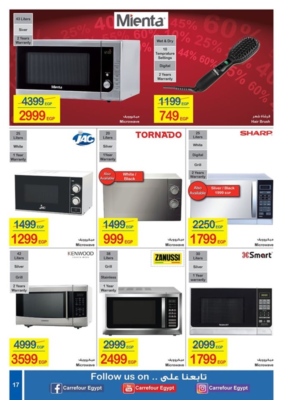 كما تشمل العروض المقدمة من سلسلة معارض كارفور على الكثير من أدوات النظافة والأجهزة المنزلية والملابس ولعب الأطفال حيث يمتد العرض حتى يوم الثلاثاء الموافق 28 يناير 2020 ولمتابعة العديد من العروض المقدمة يمكن زيارة الموقع الرسمى لمعارض كارفور على الصفحة الرسمية له على موقع التواصل الأجتماعى الفيس بوك لمعارض كارفور
