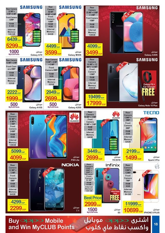 تقدم مجموعة شركات سامسونج وهواوي ونوكيا وأنفنكس وتكنو العديد من العروض لمختلف الأنواع الحديثة للهواتف المحمولة.